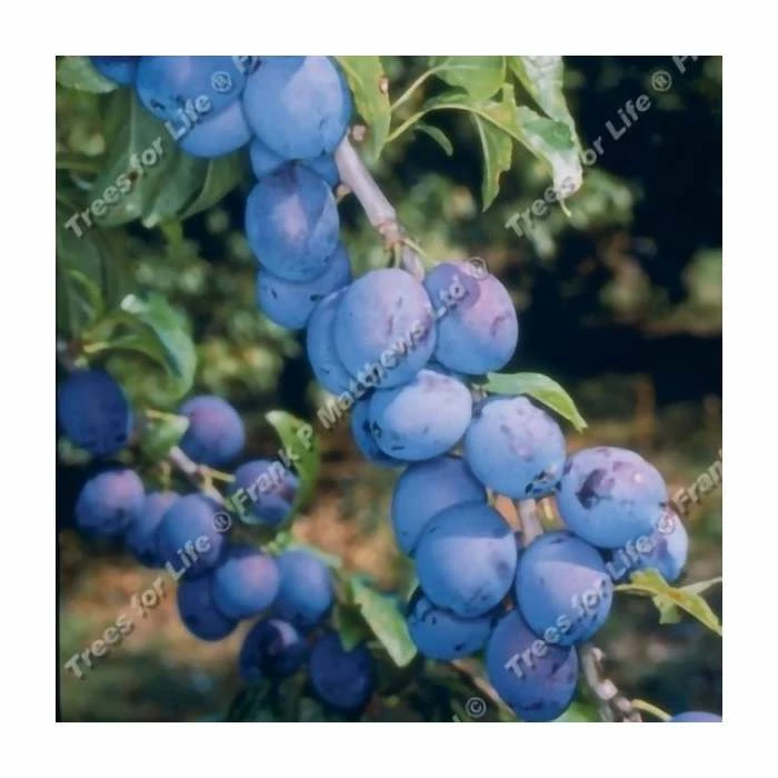 ‘King of the Damsons’ produces large fruits with black-blue bloom. It is self fertile and reliable cropper, and notably sugary for a damson and unusually free stone, which means the stone easily seperates from the flesh.