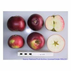 Red Devil is a modern and easy-to-grow mid-season apple tree variety with deep red fruits borne in heavy crops in September. The fruits are widely recognised for their attractive, pinky red flesh, which very juicy and has a moderately sweet/sharp taste with a hint of a strawberry scent. The pressed apples produce a pink coloured juice full of pleasant flavour, and it has a very attractive appearance. Red Devil apples store well and can be kept until January in cold, dry conditions.