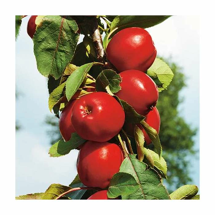 A reliable Ballerina apple with a columnar habit and dark red crisp fruit.